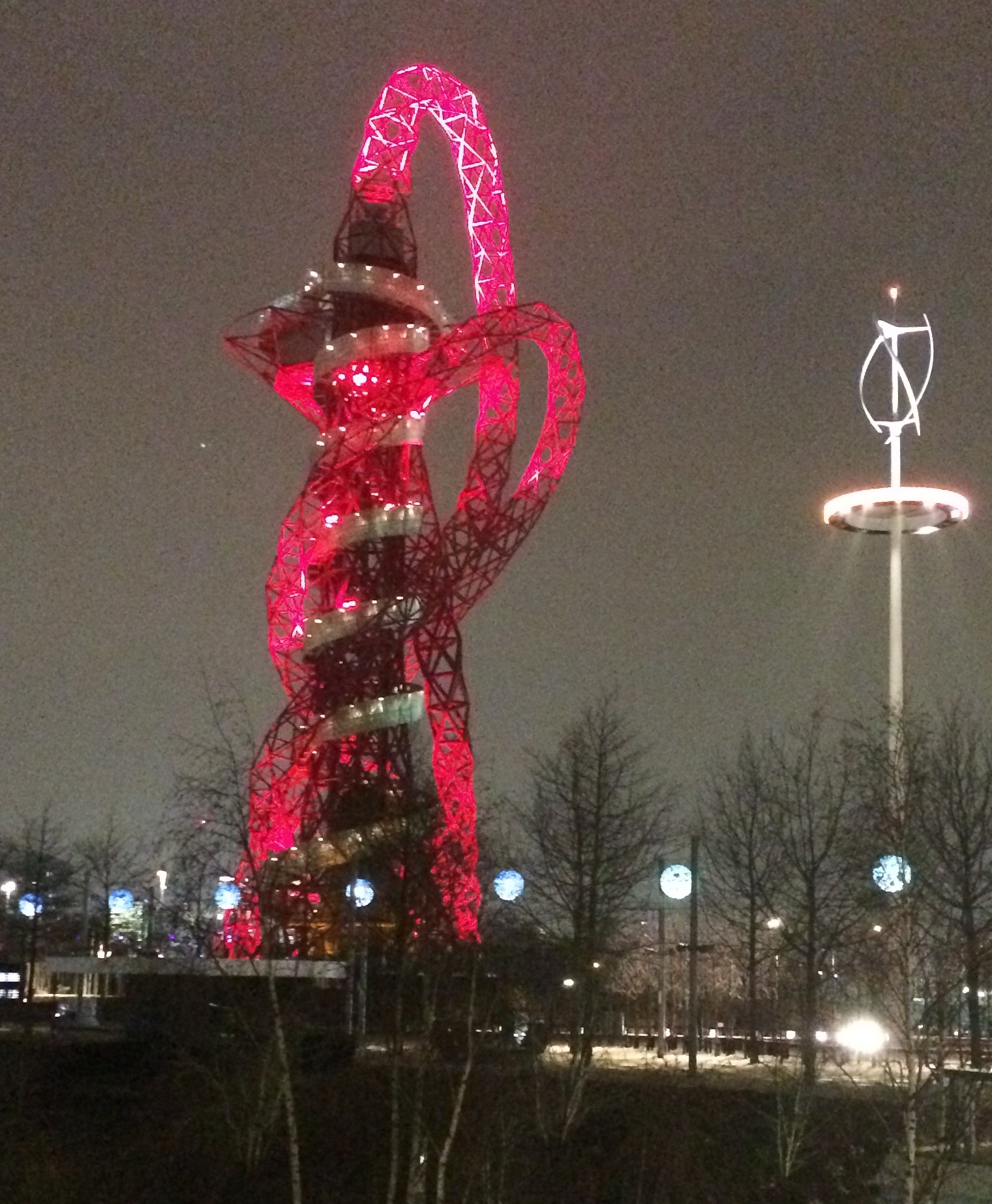 Anish Kapoor’s amazing Orbit here in East London’s Olympic quarter calls to mind previous sculptural structures built on a monumental scale. Together with Gustave Eiffel’s tower in Paris and Vladimir Tatlin’s Monument to the Third International designed for Petrograd and never built, these structures seem to reach out towards a better future, willing it into being and propelling us into a new world. In keeping with the age, Anish Kapoor’s Orbit suggests a future which is more uncertain, more challenging, more complex and, of course, more exciting than any of these other futures. Walking onto the site, we passed underneath the opening of a colossal funnel which seemed ready to suck us up and literally propel us into orbit.