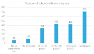 Since last year the official minimum threshold for a viable new sixth form is not less than 200 students and 15 A level subjects according to Department for Education guidance. However, over 1,000 school sixth form are well below this threshold and the pace of new proposals has hardly reduced with planned new sixth forms slipping through before the new guidance has time to bed down.
